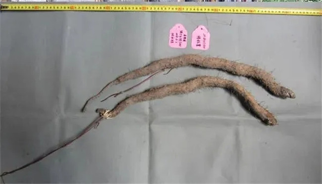 屬于當地特色山藥品種,纏繞草質藤本,塊莖為長條型,垂直生長,穗長50-80厘米,莖寬3-6厘米。每年農歷4-5月播種,春節前后收獲。