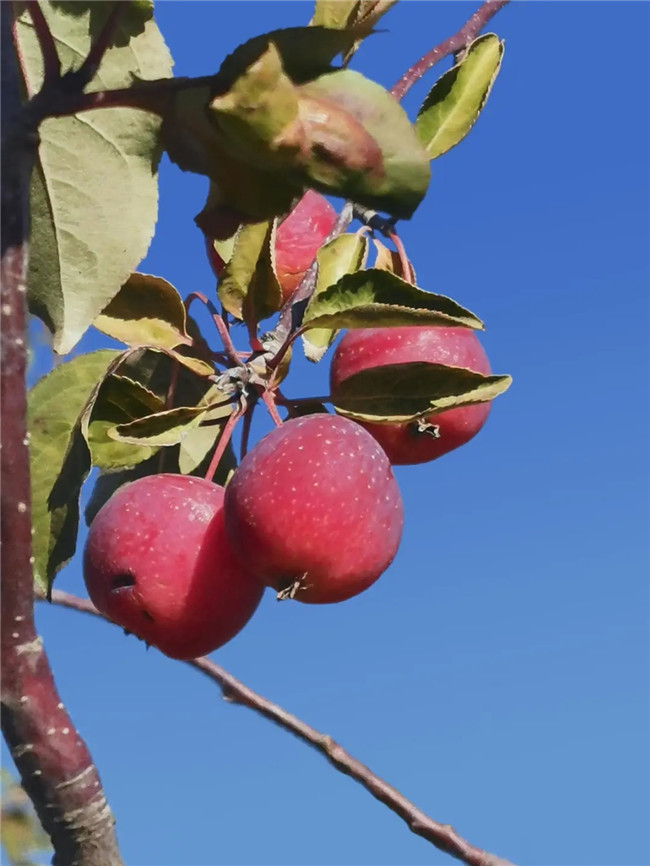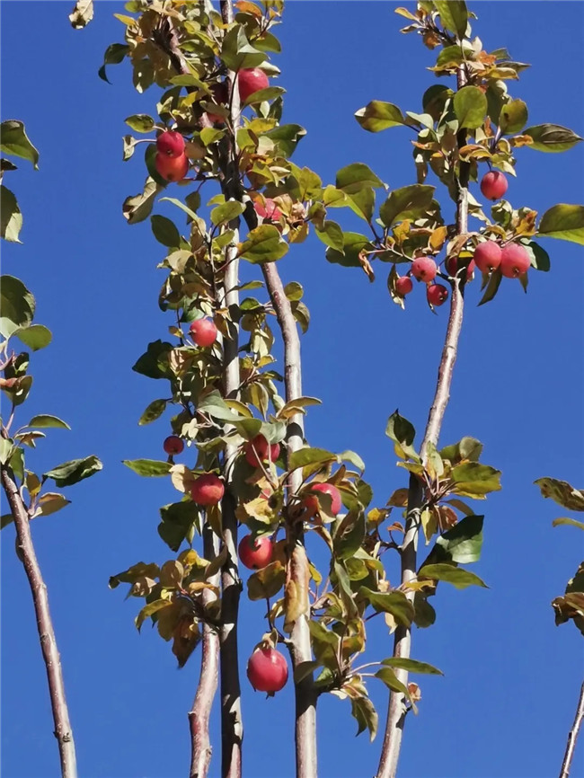 是八棱海棠的變異品種。樹體強健,耐寒、抗旱、抗病蟲、耐貧瘠、壽命長,果實外觀艷麗,耐貯存,具有較高的食用價值。樹冠緊湊、樹形漂亮,兼具較高的景觀價值。