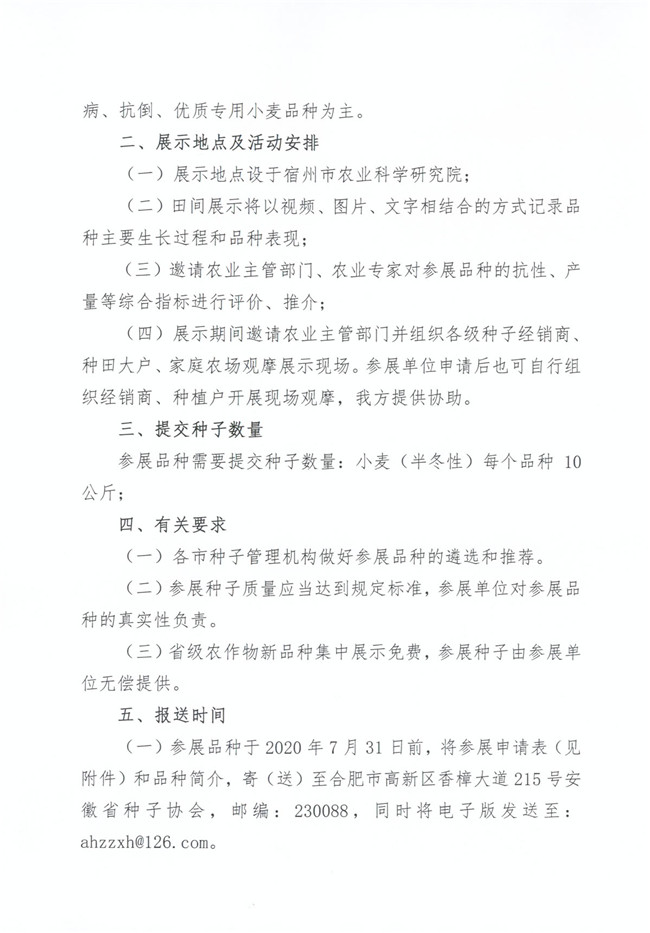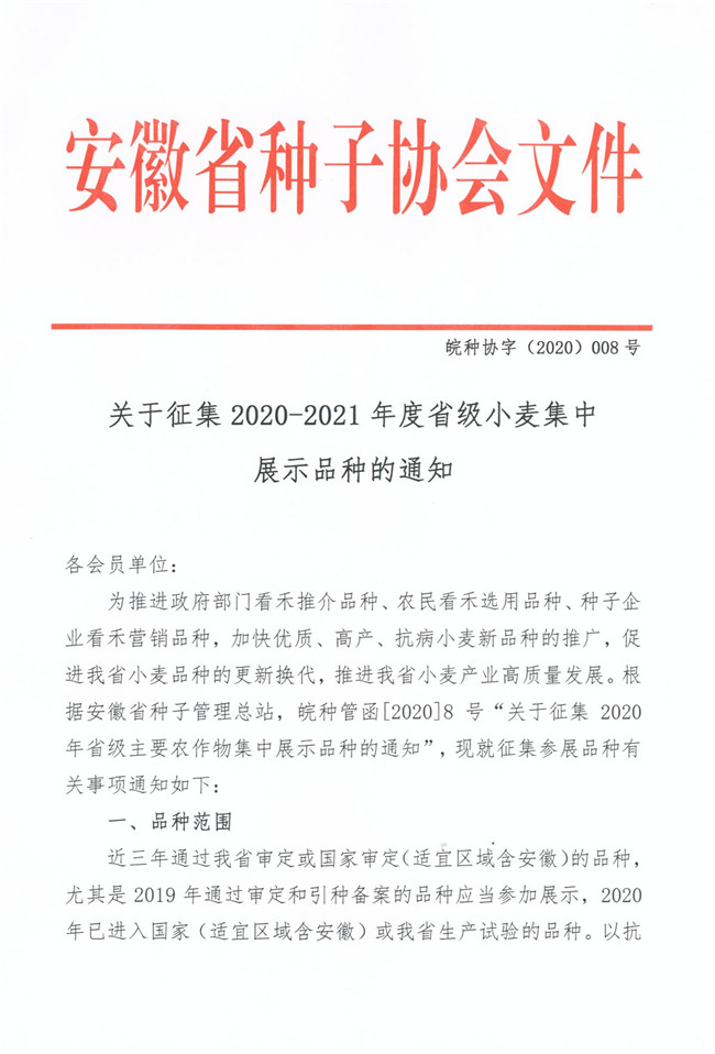 關于征集2020-2021年度省級主要小麥集中展示品種的通知