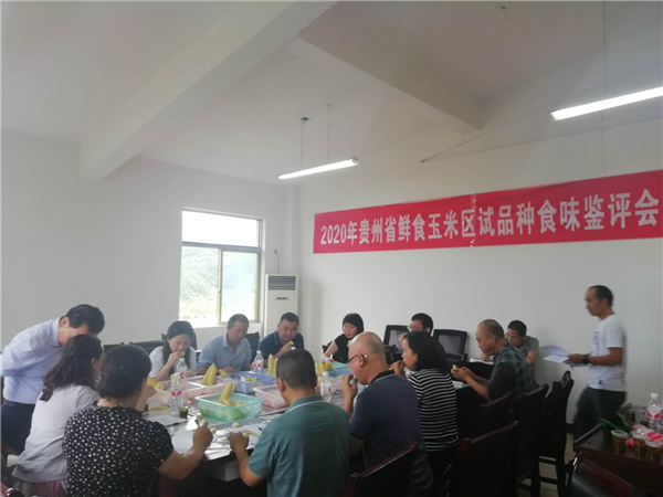 此次鑒評會是對參加2020年貴州省鮮食玉米區試的34個品種進行食味鑒評,其中省內單位自育品種達31個,共涉及單位20余家。參評品種采取錯期播種,統一管理,確保熟期一致。鑒評方式主要對品種的外觀、蒸煮、食味品質進行現場編號盲評。鑒評結果表明參試品種均優于對照,表現為外觀好、禿尖小、種皮薄、糯性以及甜度佳,顏色更加豐富,參試品種整體品質較往年有明顯質的提升。