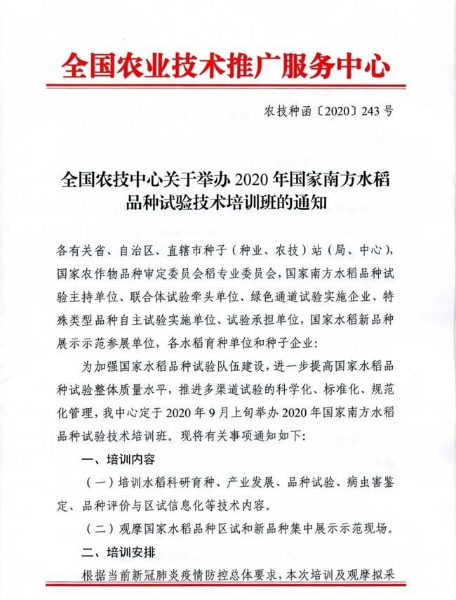 本網在線直播!2020年國家南方水稻品種試驗技術培訓班來了