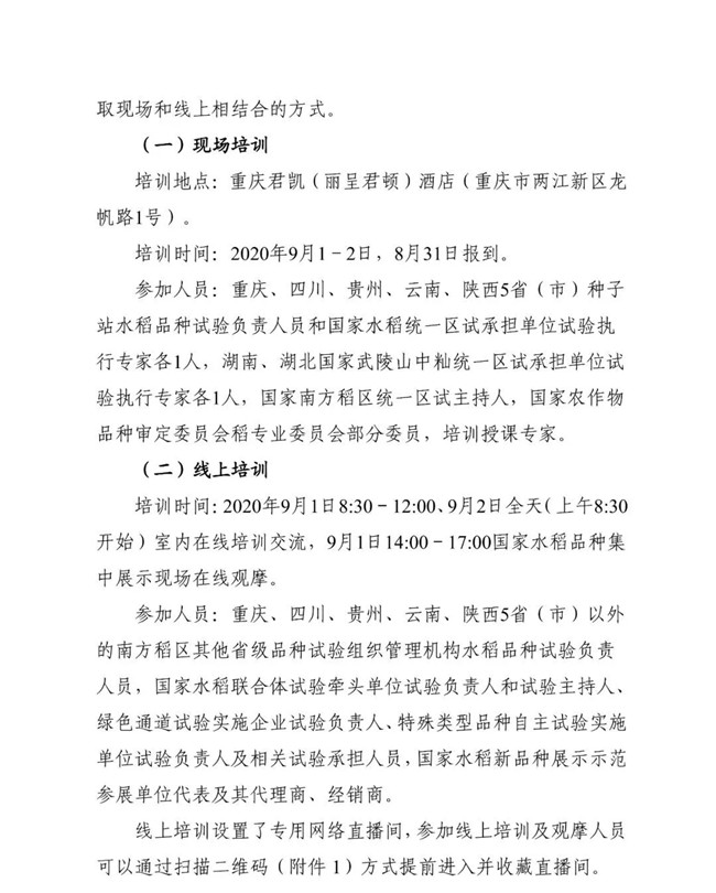品種試驗技術培訓班。本次培訓和觀摩采取現場和線上相結合的方式。參加線上觀摩和培訓的人員可通過掃描下方的二維碼提前進入或收藏專用網絡直播間。