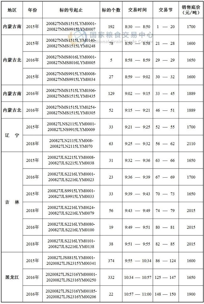 8月27日國家臨儲玉米競價交易時間預估及銷售底價
