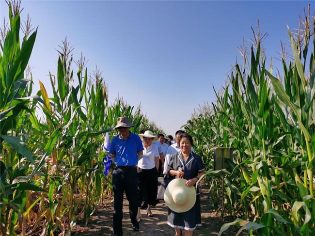 9月5日上午,與會代表乘車來到位于安徽省宿州市玉米新品種展示示范基地,實地觀摩考察了90個展示品種田間長勢。整個現場處處彩旗招展,田間綠浪翻滾,玉米長勢喜人。玉米展示基地負責人宿州市農業科學院技術人員引導大家觀摩并就展示情況作了匯報。展示品種產量與品質的完美結合,綜合抗性與株葉型態的相得益彰,給來賓們展現了一場優良玉米品種的視覺盛宴。