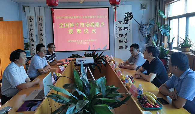 9月4日,我省“全國種子市場觀察點”授牌儀式在泰安登海五岳泰山種業有限公司舉行。全國農業技術推廣服務中心種業監測處處長王玉璽、山東省種子管理總站站長蔣慶功、泰安市農業農村局四級調研員劉洪新為“泰安登海五岳泰山種業有限公司門市部”授牌。山東省種子管理總站副站長王文濤、泰安市種子管理站站長徐加利、泰安登海五岳泰山種業有限公司董事長張清蒙出席授牌儀式。