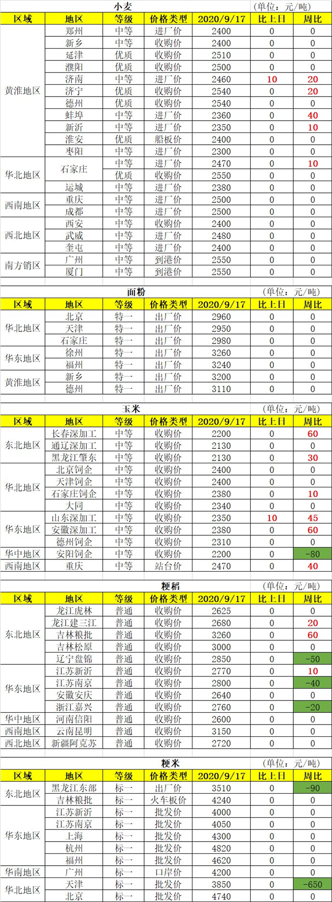 1、9月16日國家政策小麥拍賣共投放305.38萬噸,實際成交23.85萬噸,成交率7.81%,最高價2530元/噸,最低價2100元/噸,成交均價2310元/噸。