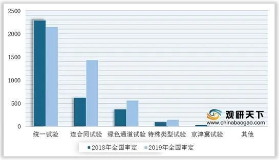從審定渠道來看,統一試驗仍然是主要的審定途徑,2019年全國審定數量2155個(ge);其次(ci)為聯合(he)體試(shi)驗(yan)、綠色(se)通道試(shi)驗(yan)等。