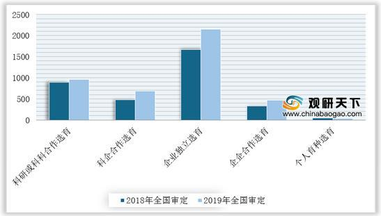 從選育單位來看,2019年企業獨立選育和企企合作選育品種共2614個,占比60.8%,比2018年增加608個(ge),企業成為品種(zhong)審定的主體。
