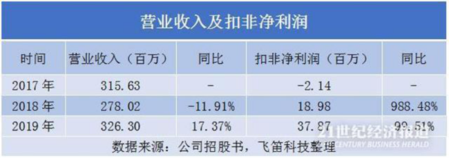 報告期內,公司的營業收入于2018年同比下降11.91%,在2019年同比增加17.37%,營收波動較大。同期,扣非凈利潤呈上升的趨勢,主要原因是毛利率逐年上升。