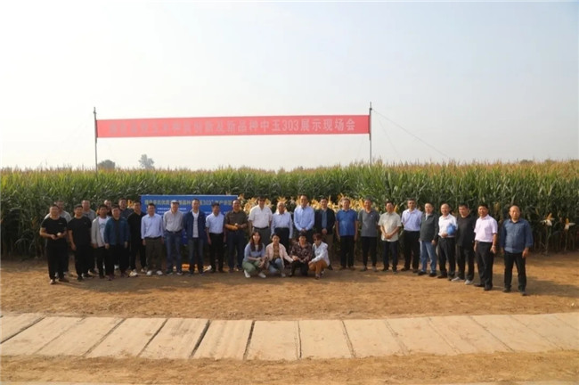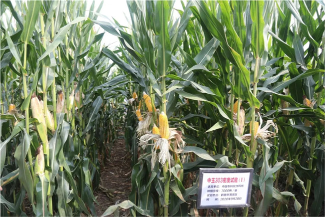 “中玉303”田間表現農藝性狀優異,綜合抗性好,可很好地克服黃淮海夏播玉米地區陰雨寡照等不利氣候因素影響;在畝種植7000株的高密度條件下仍表現出不倒伏,不空稈,不禿尖,果穗封頂好,籽粒飽滿等突出特點,實現了高產穩產,為解決當前黃淮海夏播玉米區的生產問題起到了很好的示范效果。