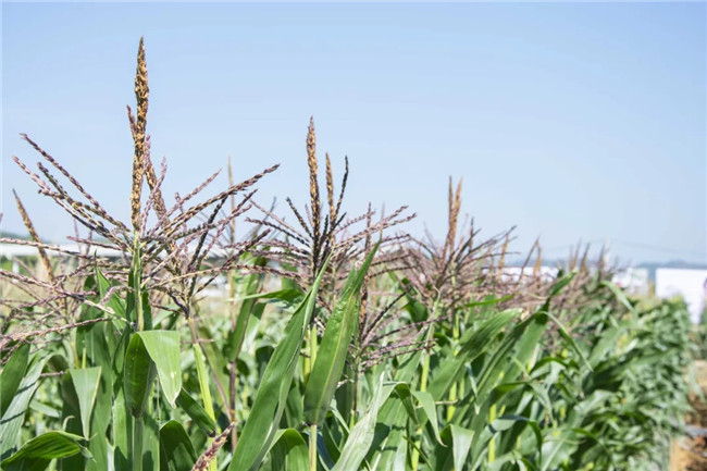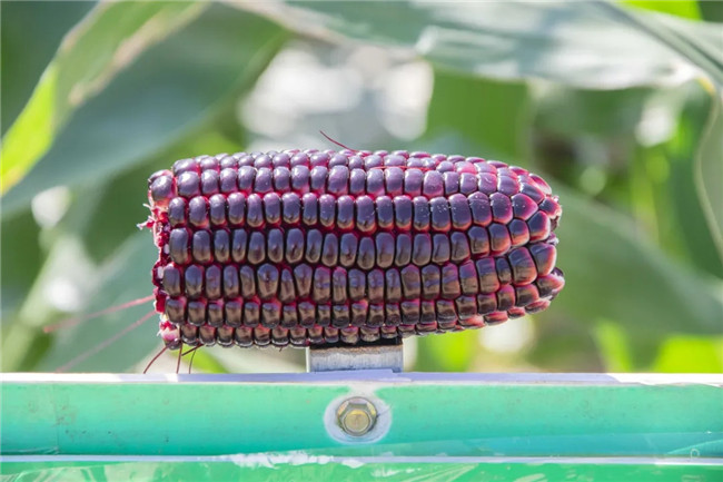 其中有一個糯玉米讓人印象深刻,其不僅玉米粒和玉米芯紫得發黑,連雄穗都是紫色的,在玉米田里顯得格外突出。不少游客和工作人員嘖嘖稱贊:“這種類型的鮮食玉米很少見。”