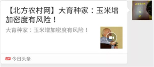 ↓圖2,《今日頭條》上有著名玉米育種家陳偉程教授的講座視頻,明確指出“玉米增加密度有風險”!