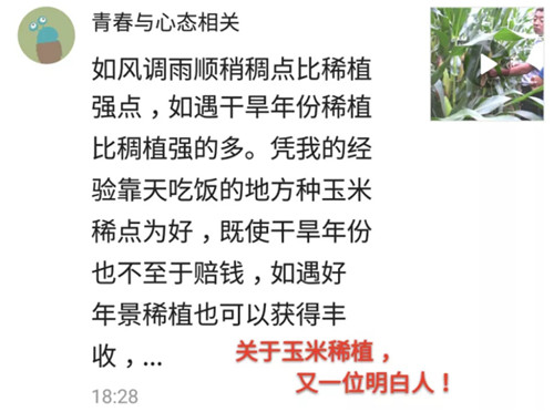↓圖10,某讀者評論:干旱地區種玉米,旱的年份不賠錢,好的年份稀植也更容易豐收。