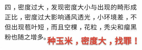 ↓圖13,某農業技術人員的文章:玉米果穗畸形與密度大小成正比。密度過大,影響通風透光,容易出現“苞葉短”(果穗露頂),空稈,花粒,禿尖以及瘤黑粉病的加重。