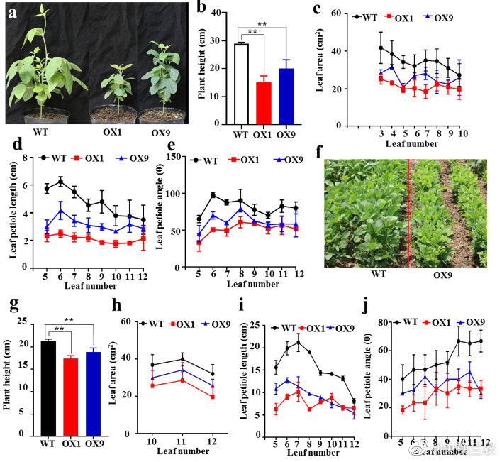 近日,中國農業科學院油料作物研究所南方大豆遺傳育種創新團隊發現了調控大豆株型、提高大豆耐密植與耐旱性的重要基因GmMYB14,揭示了該基因通過油菜素內脂途徑調控大豆株型,提高大豆耐密植與耐旱性的分子機理。相關研究成果在線發表在《植物生物技術(Plant Biotechnology Journal)》上。