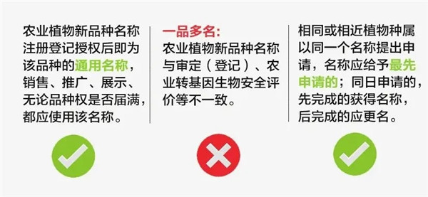 1)合法性。品種名稱不得違反法律法規、社會公德,不得夸大宣傳、與商標相同或近似(同意除外)等情況。(具體情形請”閱讀原文“)