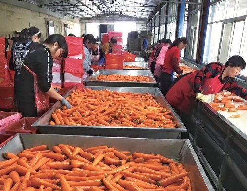 青島有田農業發展有限公司胡蘿卜加工車間。 資料圖