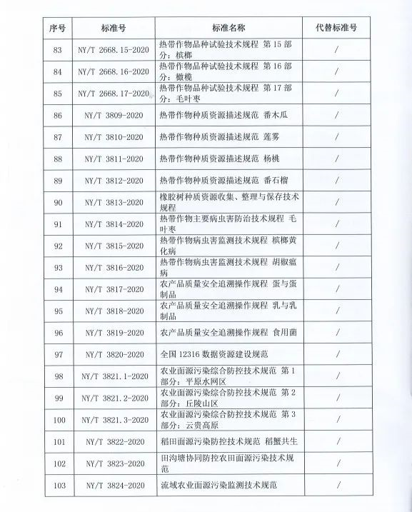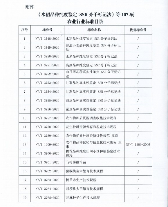 附件:《水稻品種純度鑒定SSR分子標記法》等107項農業行業標準目錄