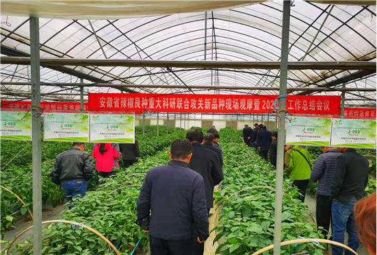 為推動我省辣椒產業向綠色、優質、高效方向發展,2020年11月27日,省辣椒良種聯合攻關牽頭單位安徽省農業科學院在蕪湖召開“安徽省辣椒良種重大科研聯合攻關新品種現場觀摩暨2020年工作總結會議”。