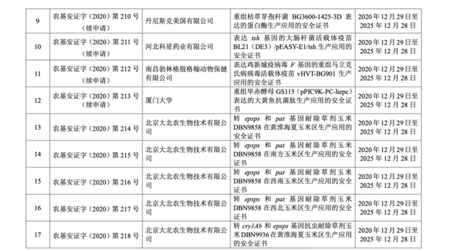 新一批農業轉基因生物安全證書批準公布!附清單!