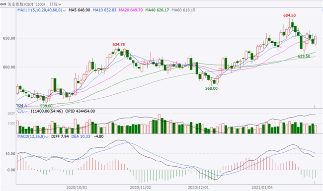 美國農業部的1月份供需報告顯示,2020/21年度美國小麥期末庫存下調2600萬蒲,為8.36億蒲,同比減少19%。2020/21年度全球小麥期末庫存下調330萬噸,為3.132億噸。