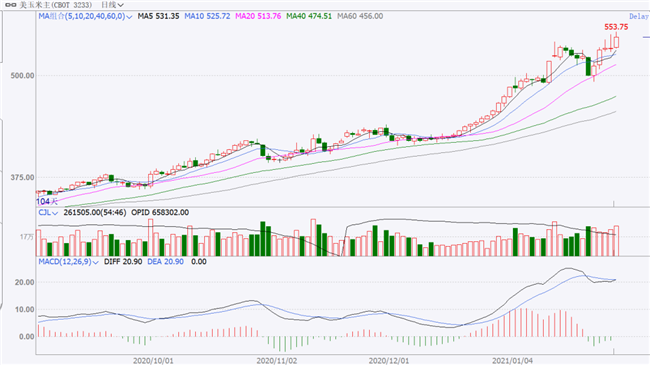 從全球數據來看,美國農業部將2020/21年度全球玉米產量調低960萬噸,全球玉米進口調低329萬噸,因為歐盟和墨西哥的進口預計下降。全球玉米期末庫存調低520萬噸,至2280萬噸,這也將是2014/15年度以來的最低值。全球玉米庫存/用量比預計為21.3%,這也是2013/14年以來的最低值。