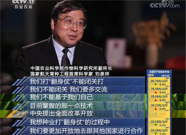 ▲ 中國農業科學院作物科學研究所副所長劉錄祥研究員強調種業“翻身仗”不能閉關打 |來源:CCTV-17中國三農報道