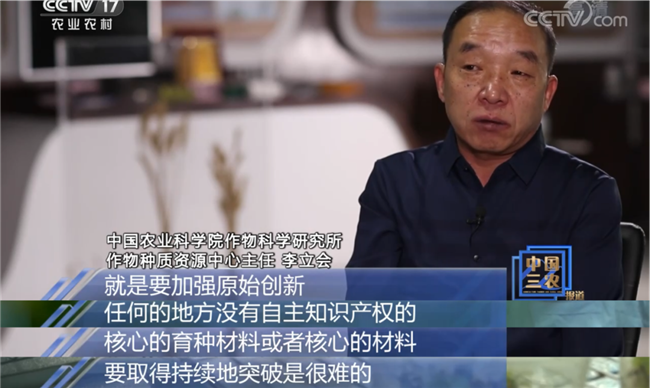 ▲ 中國農業科學院作物科學研究所李立會研究員強調育種創新的重要性 |來源:CCTV-17中國三農報道
