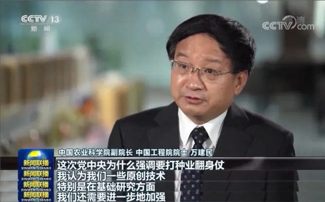 ▲ 中國農業科學院副院長萬建民院士接受采訪 | 來源:CCTV-13新聞聯播