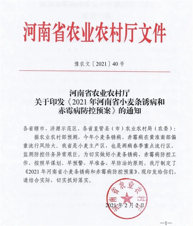 據專(zhuan)家預(yu)測,今年小麥條銹病、赤霉病在我(wo)省(sheng)存(cun)在偏重及以上流行風險,對夏糧生產安全構(gou)成(cheng)直接威脅。為切實搞好防控工作,最(zui)大程度減少危害損失,特制訂本預(yu)案。