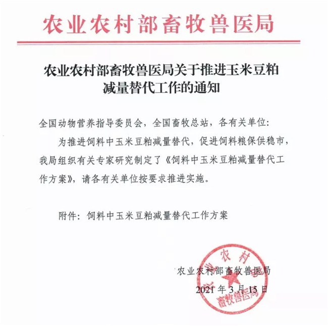 早在2020年9月,國務院辦公廳就發布《關于促進畜牧業高質量發展的意見》,提出要健全飼草料供應體系,調整優化飼料配方結構,促進玉米、豆粕減量替代。