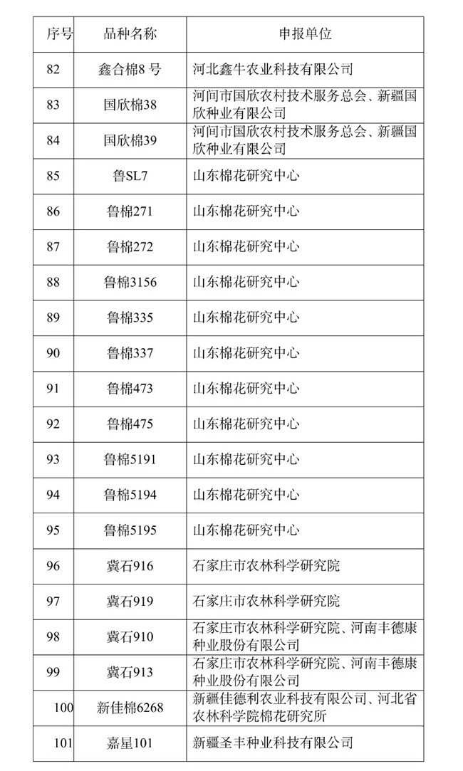 附件:皖棉1331S等101個轉基因植物品種目錄