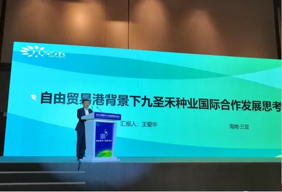 九圣禾種業作為《海南自由貿易港種業發展論壇》獨家贊助單位,九圣禾種業總裁王愛華受邀做《自由貿易港背景下九圣禾種業國際合作發展思考》報告,針對九圣禾國際發展情況及未來戰略規劃做了分享。在《對話:南繁種質資源共享、南繁成果高效轉化的機制創新》上,九圣禾研究院總經理高雪飛就研究院未來定位和商業模式做了分享。