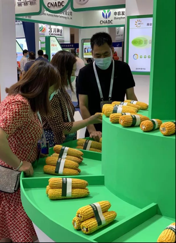 本次大會,九圣禾種業股份有限公司在T1展位,主要對公司商業模式,即“大研發、大生產、大營銷”三大體系進行展示,同時展出優良玉米新品種30多個,吸引眾多參會人員了解咨詢。