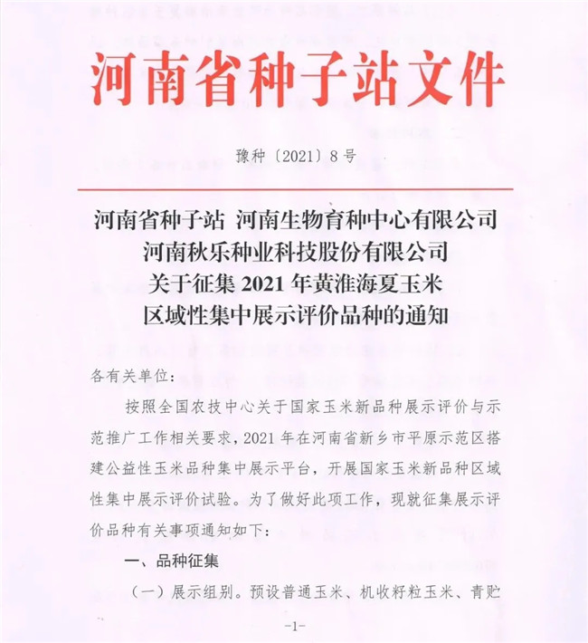 2021年黃淮海夏玉米區域性集中展示評價品種開始征集了!