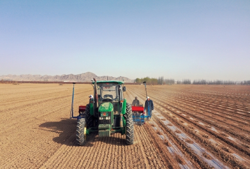 甘肅亞盛種業玉米制種基地運用衛星導航系統農機作業。 袁曉麗 攝