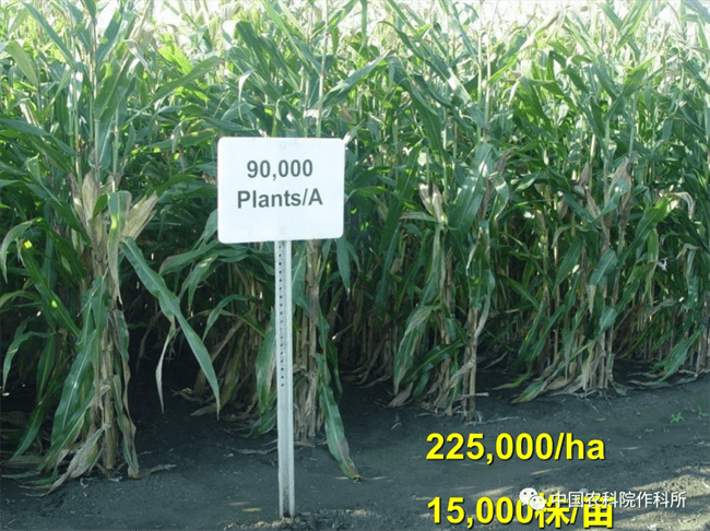 一是雜種優勢群利用與種質改良。在玉米育種技術方面,以雜種優勢利用為核心的種質改良始終是玉米商業化育種的基石。美國等發達國家玉米商業化育種起步早,在種質改良過程中,為了簡化種質資源分類和形成自己的種質特色,長期按照母本群(SS群)和父本群(NSS群)進行分類改良,堅持群內循環選系,群間組配雜交種,不斷累積種質優良等位基因頻率,持續獲得穩定的遺傳增益,奠定了美國玉米育種長期領先世界的基石和種質基礎(圖9)。目前,美國玉米種質在耐密、抗倒、抗逆和宜機收方面表現突出,新品種試驗密度可高達15000株/畝,綜合反映出美國玉米種質在抗逆、耐密、高產上的優良性狀和長期持續改良的累積效益(圖10)。