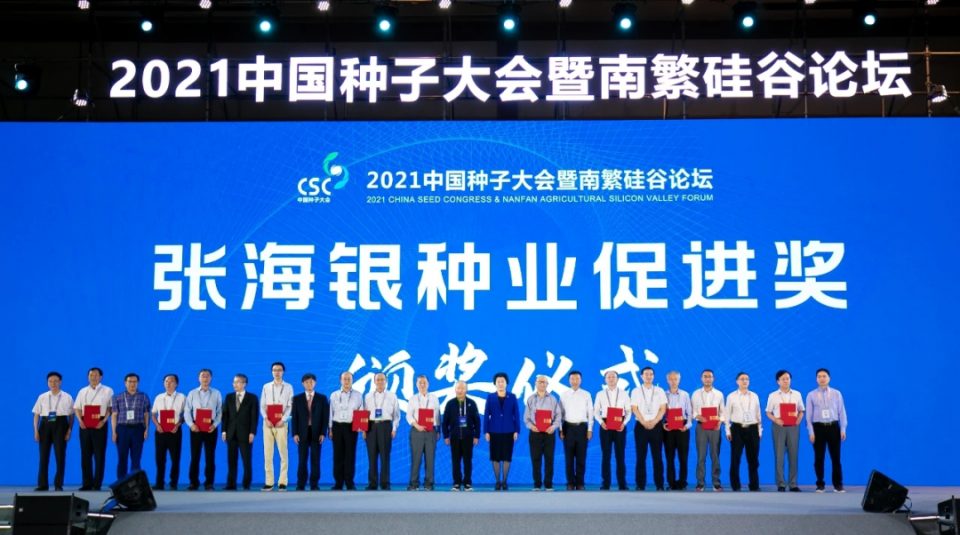 2020年張海銀種業促進獎頒獎儀式在2021中國種子大會暨南繁硅谷論壇上舉行。