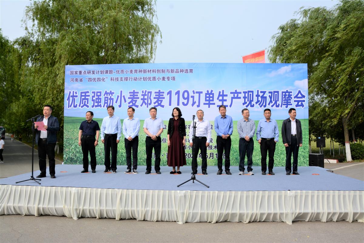 5月11日,河南省農業科學院在南陽組織召開了優質強筋小麥鄭麥119訂單生產現場觀摩會。中國工程院院士、院長張新友、副院長衛文星,南陽市人大副主任劉榮閣、河南省農業農村廳科教處處長胡若哲等領導和專家出席會議。