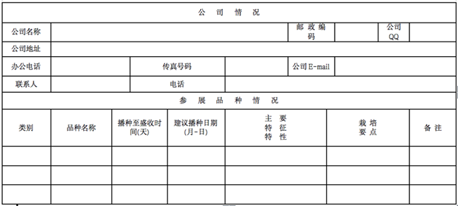 本次品種展示不需繳納展示費用。番茄參展品種征集截止期為2021年6月10日;其他蔬菜品種征集截止期為7月10日。請參展單位按時間要求將品種回執表(見附件)與足量種子一并寄至豐臺區種籽管理站。
