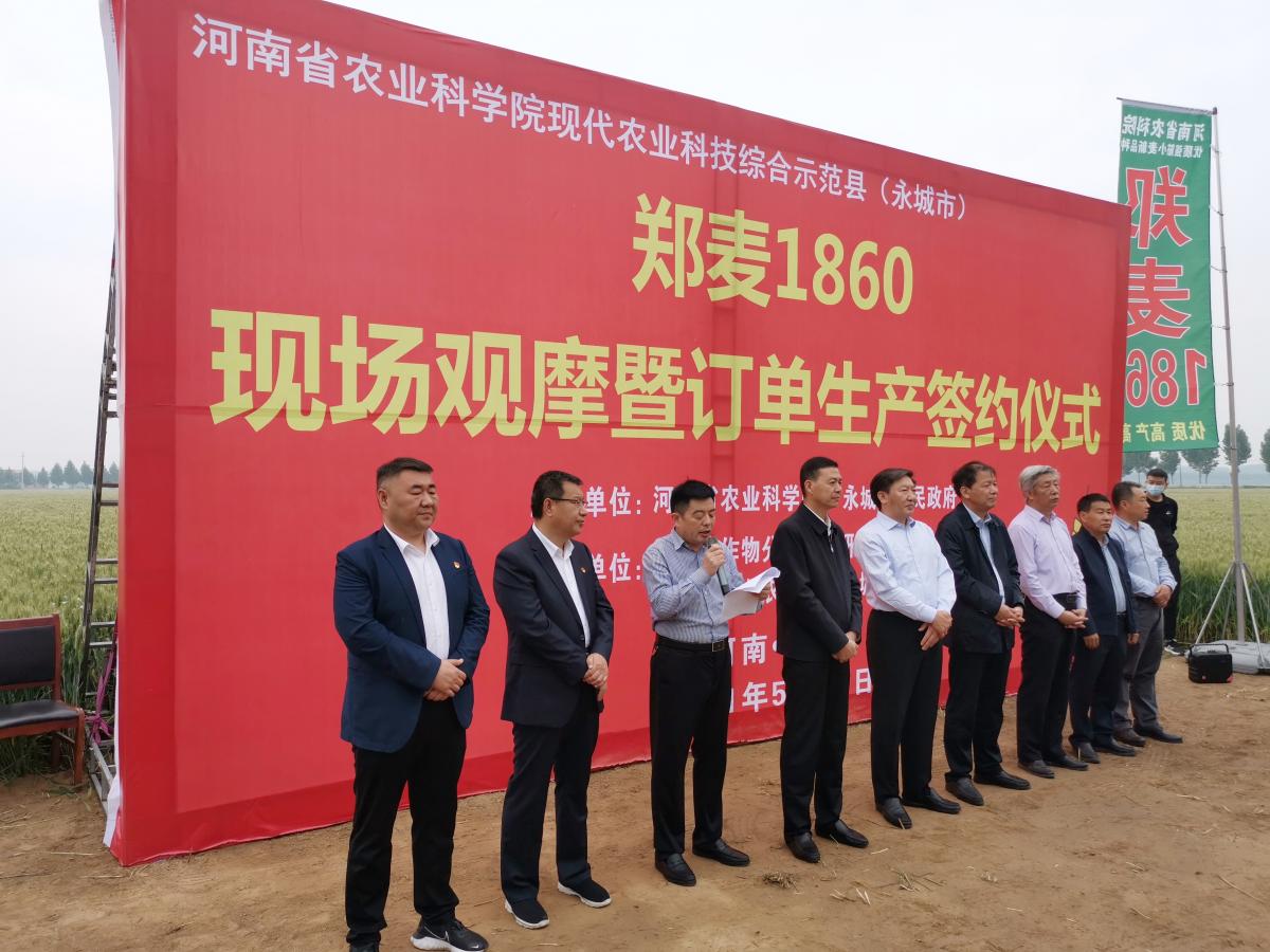 5月19日,我院在永城市舉辦鄭麥1860現場觀摩暨訂單生產簽約儀式,我院副院長衛文星,省農業農村廳巡視員、省農學會會長鄒慶鵬,永城市人民政府副市長梁廷振等領導和專家出席會議并講話。