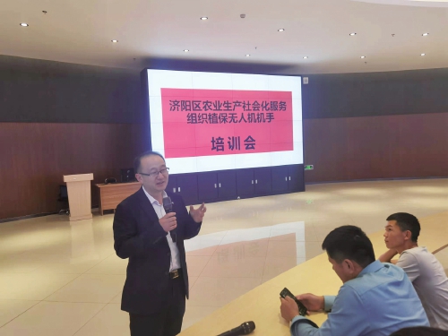 山東濟南市濟陽區農業生產社會化服務組織植保無人機機手培訓會現場。 資料圖