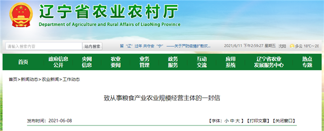 6月8日,遼寧省農業農村廳官網發布《致從事糧食產業農業規模經營主體的一封信》,支持將在去年基礎上,于今年繼續實施正規貸款財政補貼政策。采取“先備案、辦貸款、還款后、經審核、再貼息”的程序,對糧食類新型農業經營主體的貸款實施貼息,降低經營成本,發揮財政貼息資金“四兩撥千斤”作用,促進糧食穩定發展,確保糧食安全。