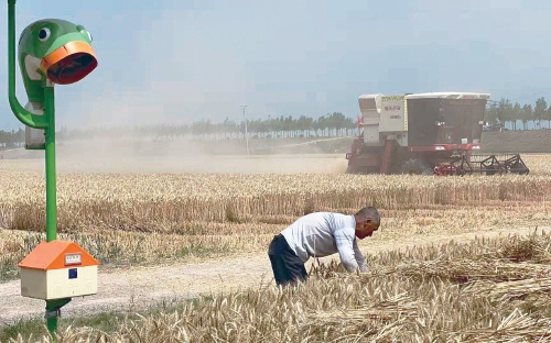 在安徽阜南縣,村民韓一方把3000畝小麥全部托管給了安徽金田種業有限公司。“托管給公司,自己不用起早貪黑干農活兒,每畝地還增產不少,現在我們就等著拉糧入庫、稱重數錢啦。”韓一方看著在田間穿梭忙碌的農機,滿臉歡喜。