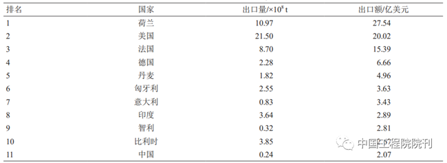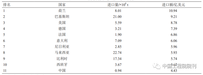 據統計(見表3),2019年世界種子進口總額為146.57億美元;荷蘭排名第1位,種子進口額為10.94億美元,約占全球進口總額的7.46%。我國種子進口額為4.43億美元,約占全球進口總額的3.02%,排名第11位;進口額排在前3位的是蔬菜種子(2.24億美元)、黑麥草種子(0.47億美元)、草本花卉植物種子(0.39億美元);屬于種子貿易逆差國,逆差額為2.36億美元。通過進出口數據對比發現,荷蘭、美國、法國、德國、意大利、比利時等既是種子出口大國,也是種子進口大國,貿易活躍、市場開放度高。