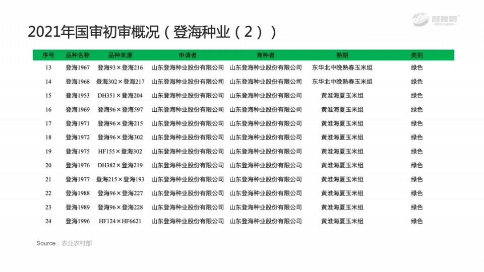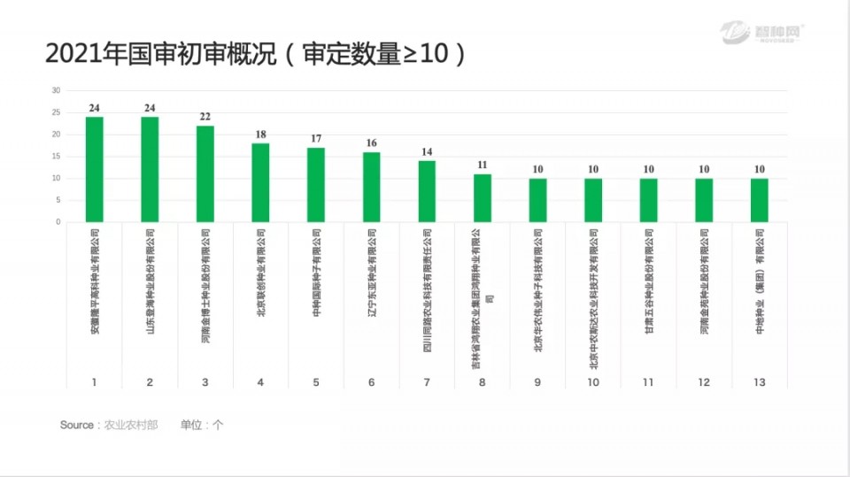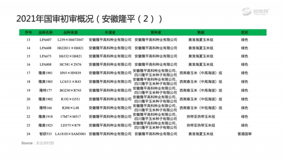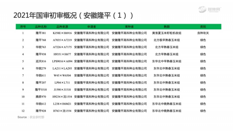 其中,數量位居第一的單位是后發玉米種業安徽隆平和老牌科研實力雄厚山東登海。安徽隆平為24個,比去年同期20個增加4個,山東登海種業股份有限公司24個,去年同期22個品種。