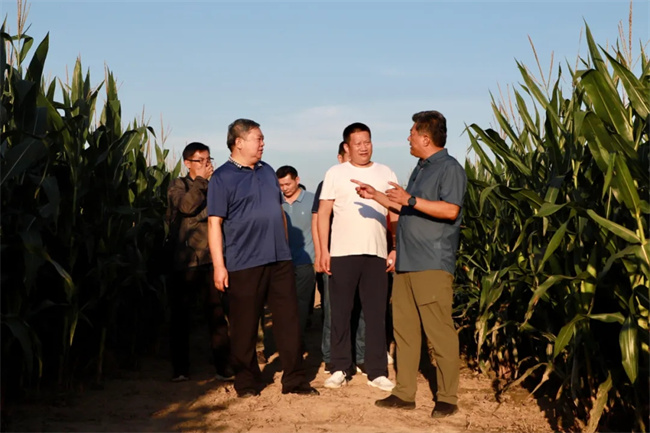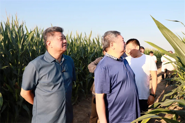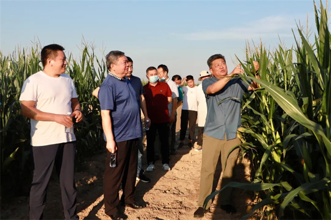 8月27日下午,河南省種子站站長馬運糧、副站長王令濤等一行來到位于國家生物育種產業創新中心的國家玉米新品種核心展示田調研指導,考察展示示范區品種表現情況。河南秋樂種業科技股份有限公司總經理侯傳偉、市場總監楊銘波、市場部經理張廣磊等陪同調研。