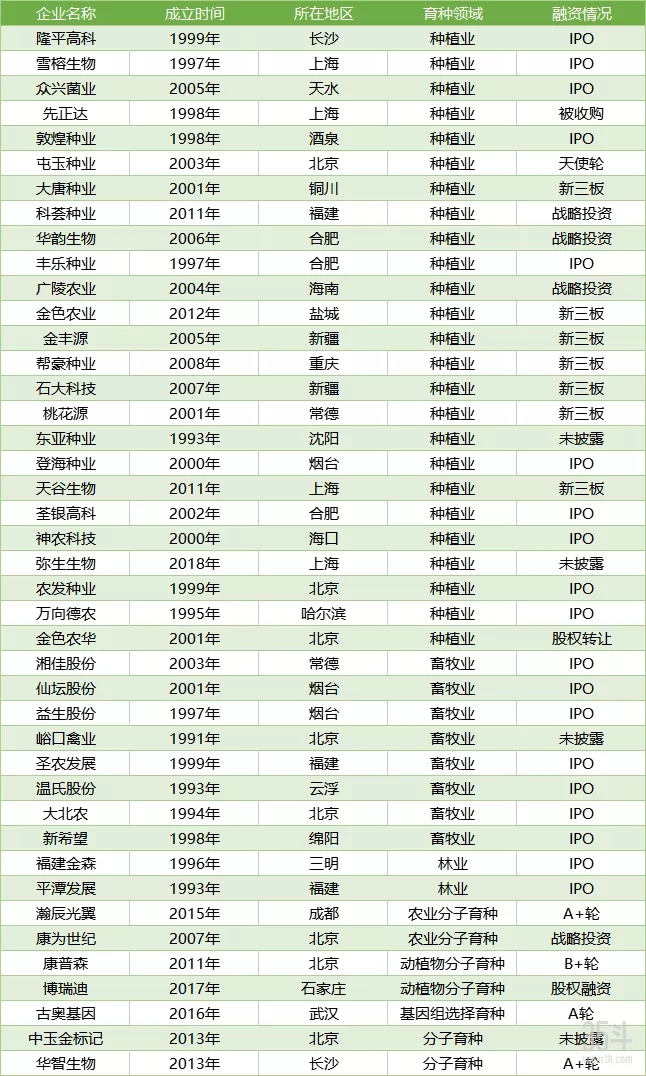 國內(nei)種企(qi)清(qing)單(排(pai)名不分先(xian)后,未(wei)統(tong)計入內(nei)的企(qi)業(ye)可聯系作者添(tian)加)