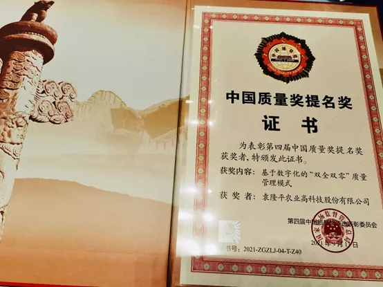 隆平(ping)高科“基于數(shu)字化的(de)‘雙全雙零’質量(liang)管理模式”榮獲第四屆中(zhong)國質量(liang)獎提名獎。