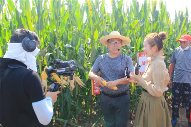 “AHLP_507,是我們和科研院所合作的一個新品種。這個品種最大的賣點就是豐產性特別好...”安徽隆平高科王磊經理正在通過鏡頭向觀看直播的經銷商和農民朋友介紹公司的后續新品種。